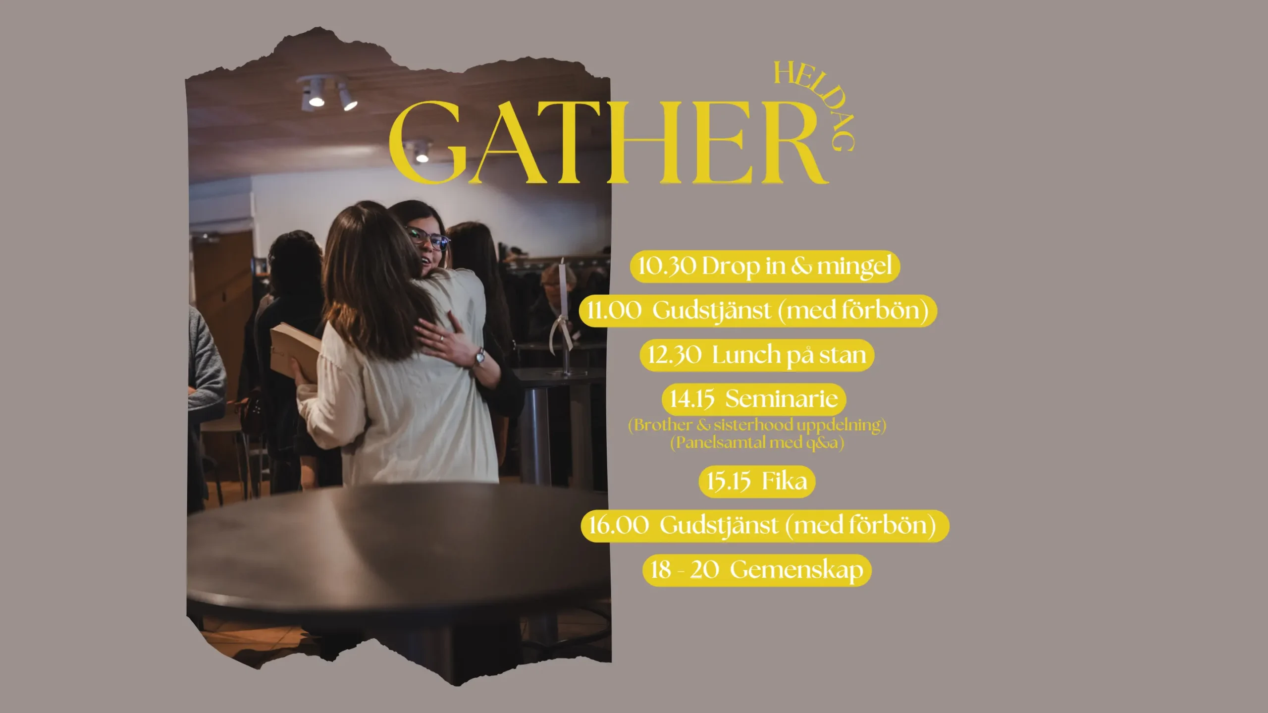 Vi ses i våra connect grupper, after church på söndagar och olika aktiviteter.